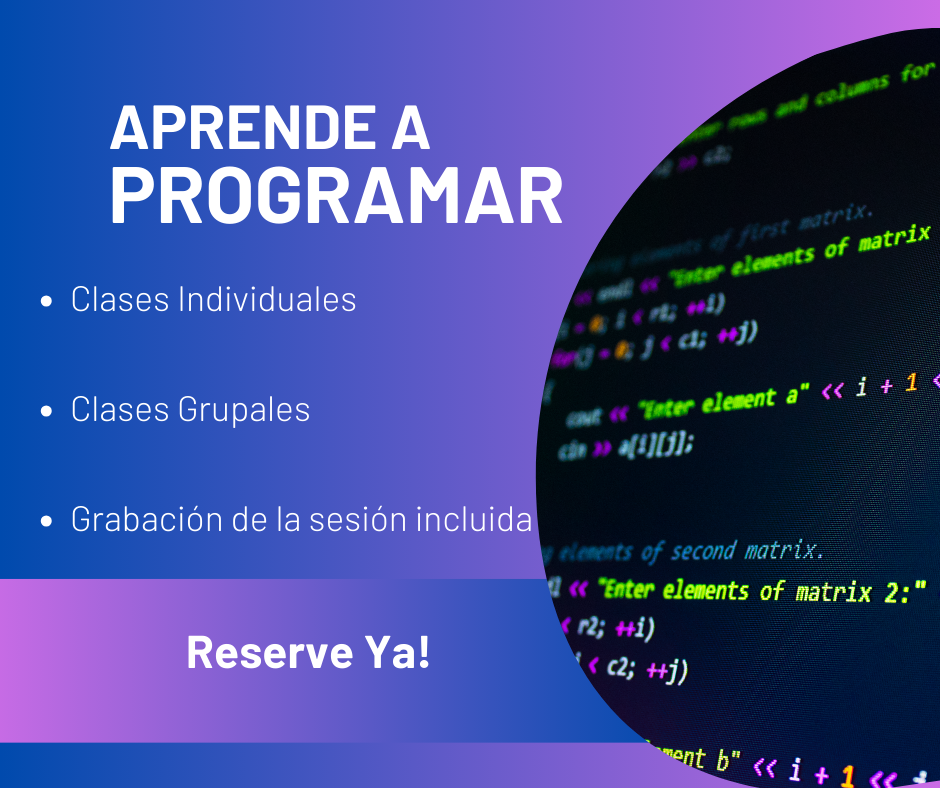 Aprovecha la oportunidad de agendar clases virtuales personalizadas para resolver dudas, aprender desde cero o reforzar tus conocimientos. Agenda ahora y paga después. Además, obtén una clase gratuita de nivelación para evaluar tu nivel y definir el mejor plan de aprendizaje para ti.